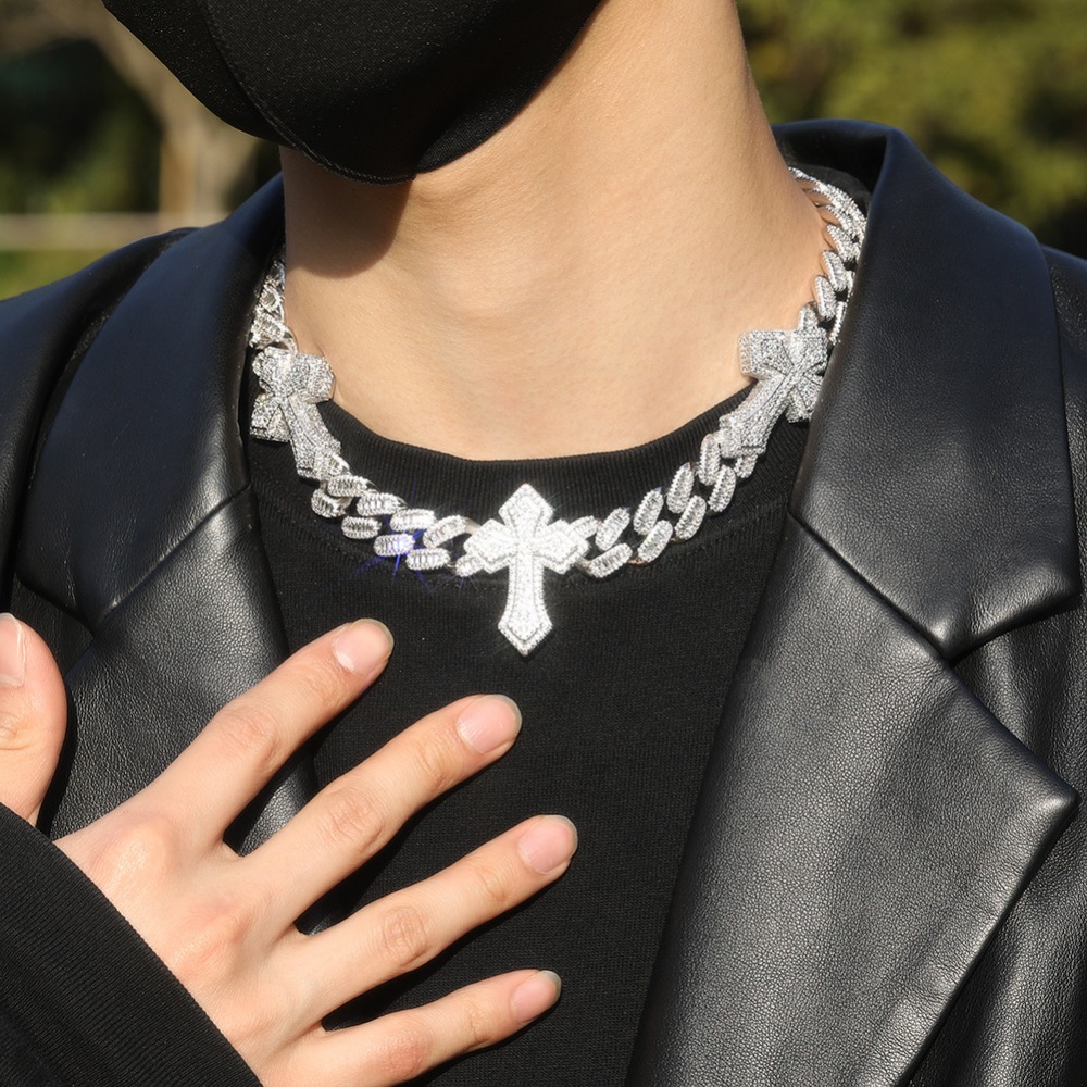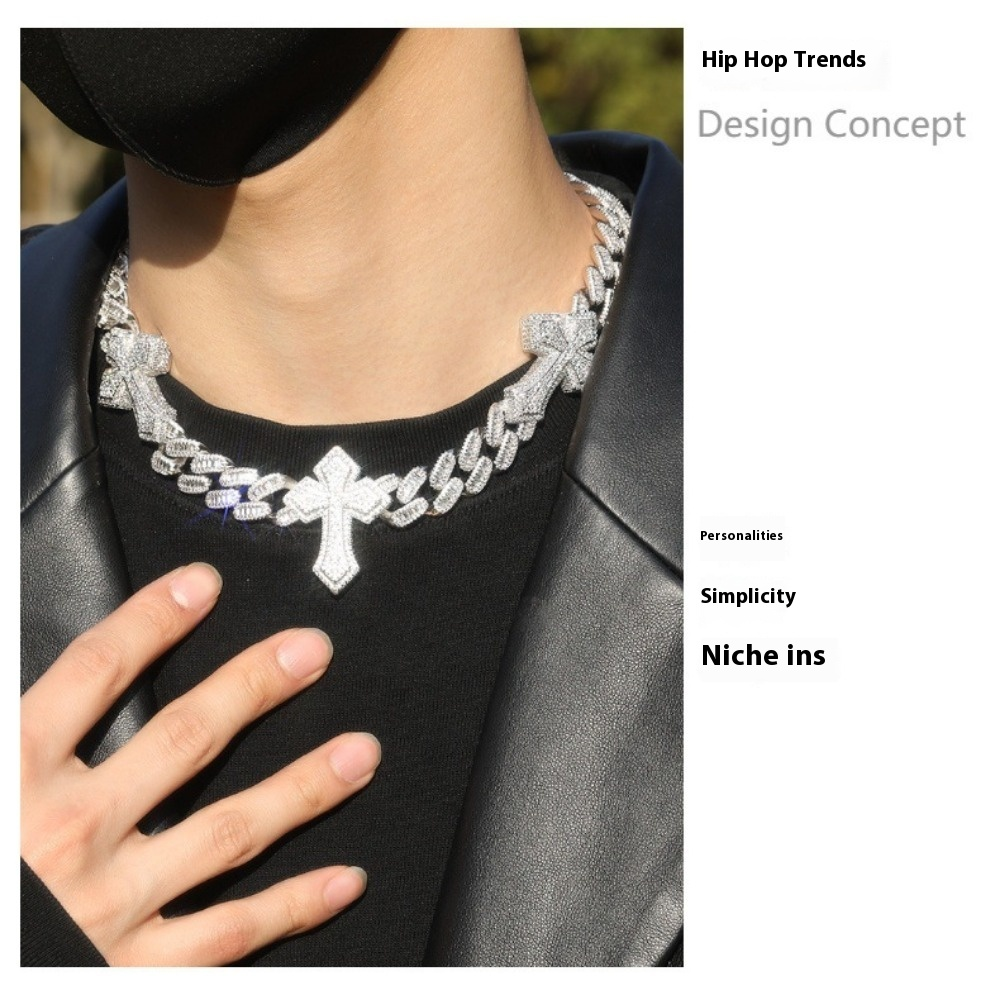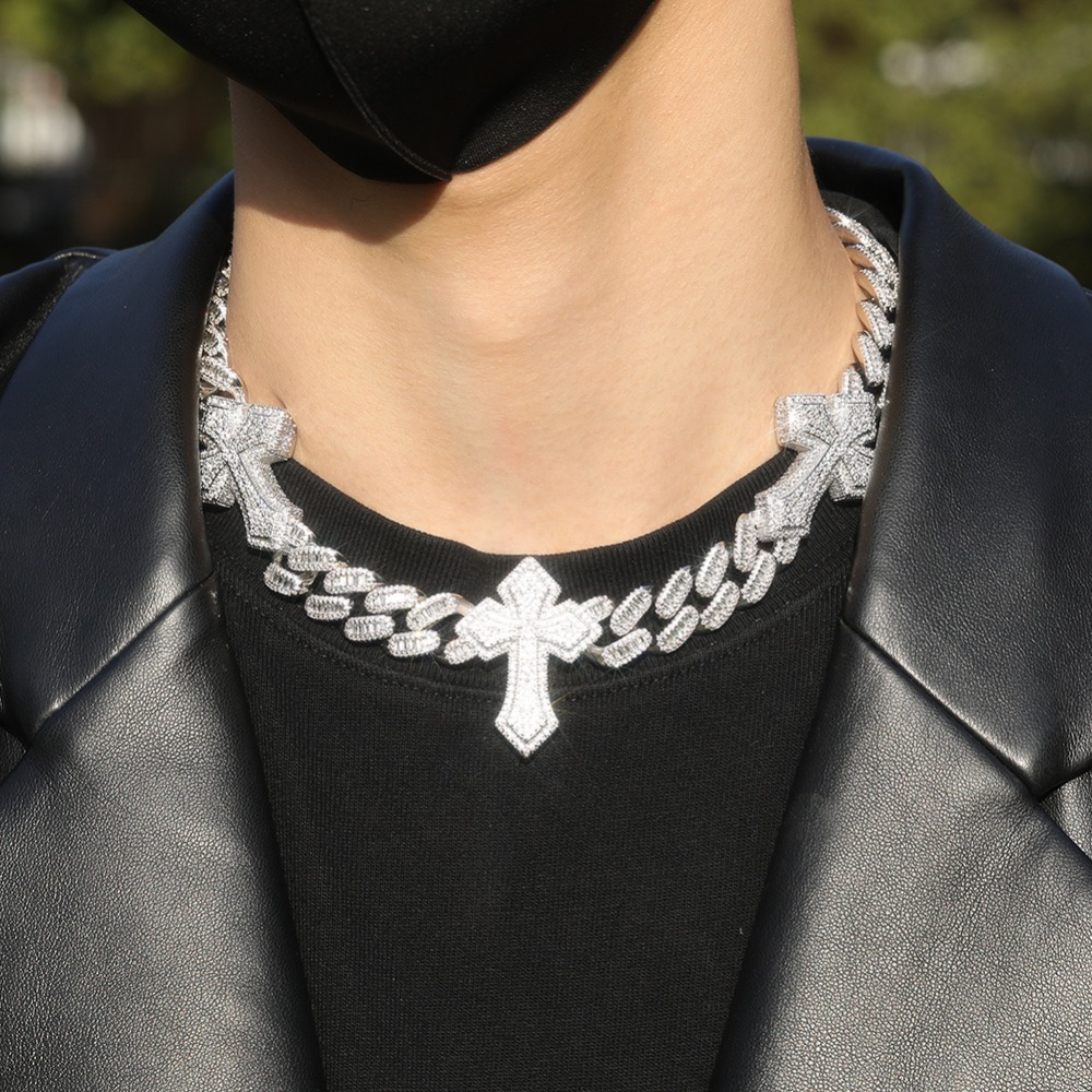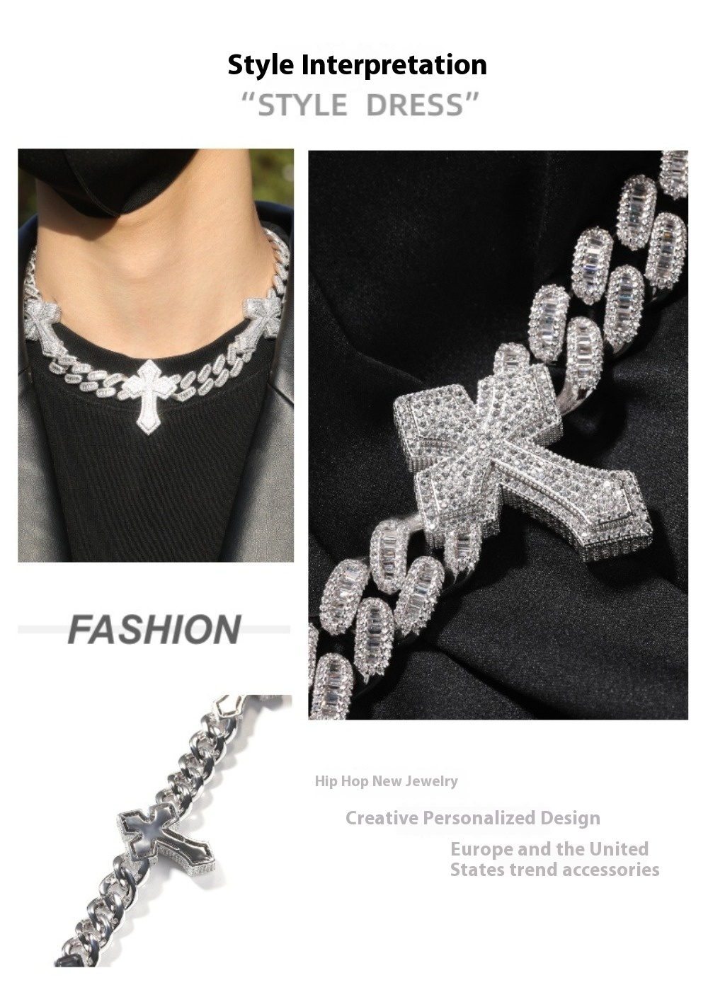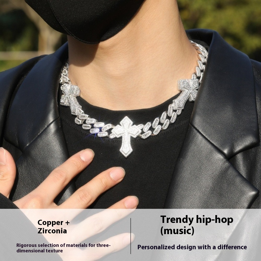 Full zirconia cross Cuban chain - Hiphop men's street dance cool necklace