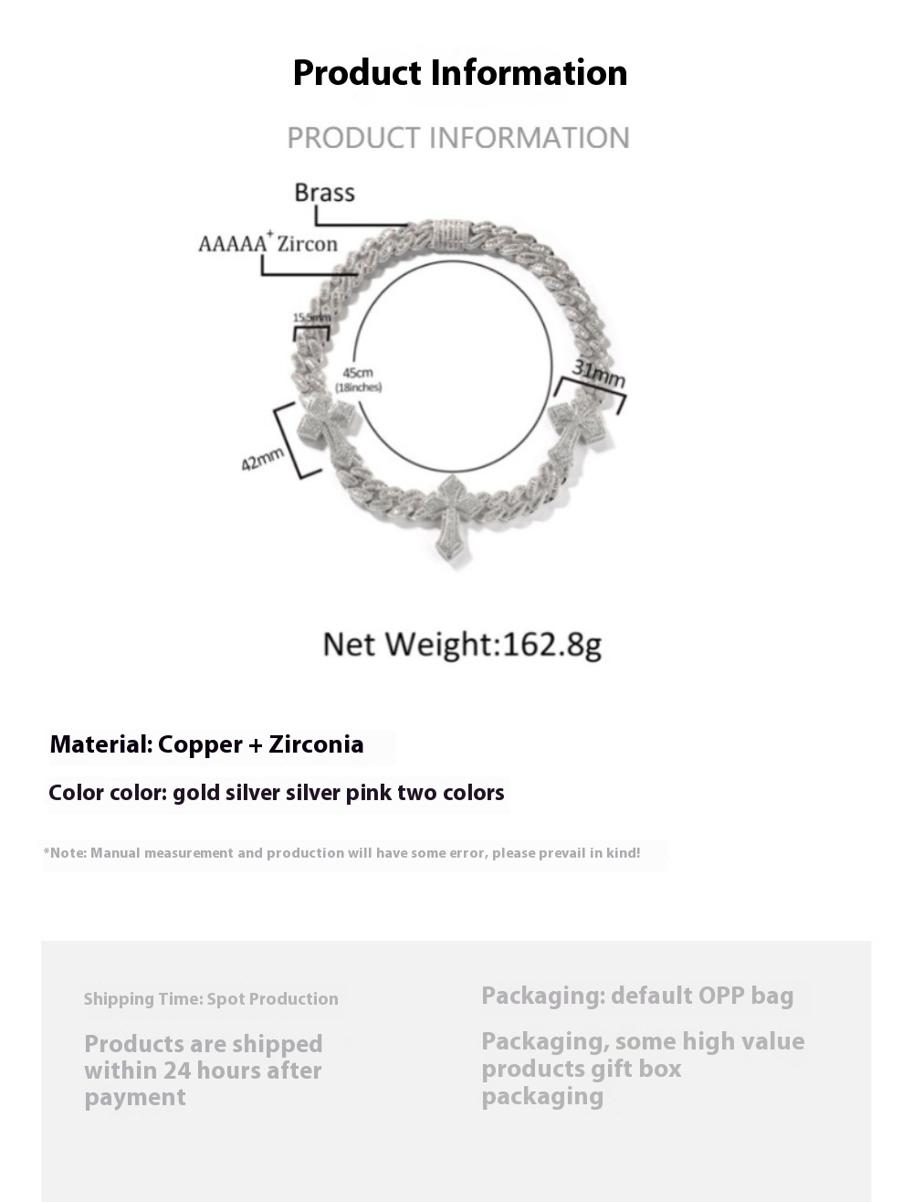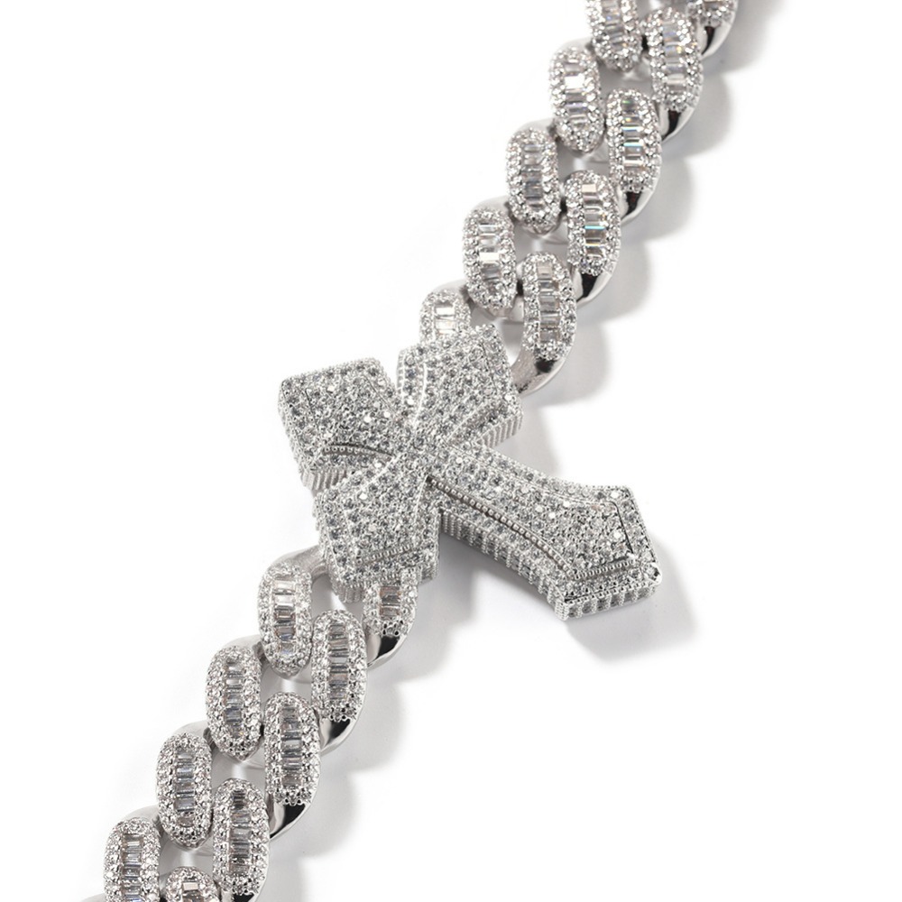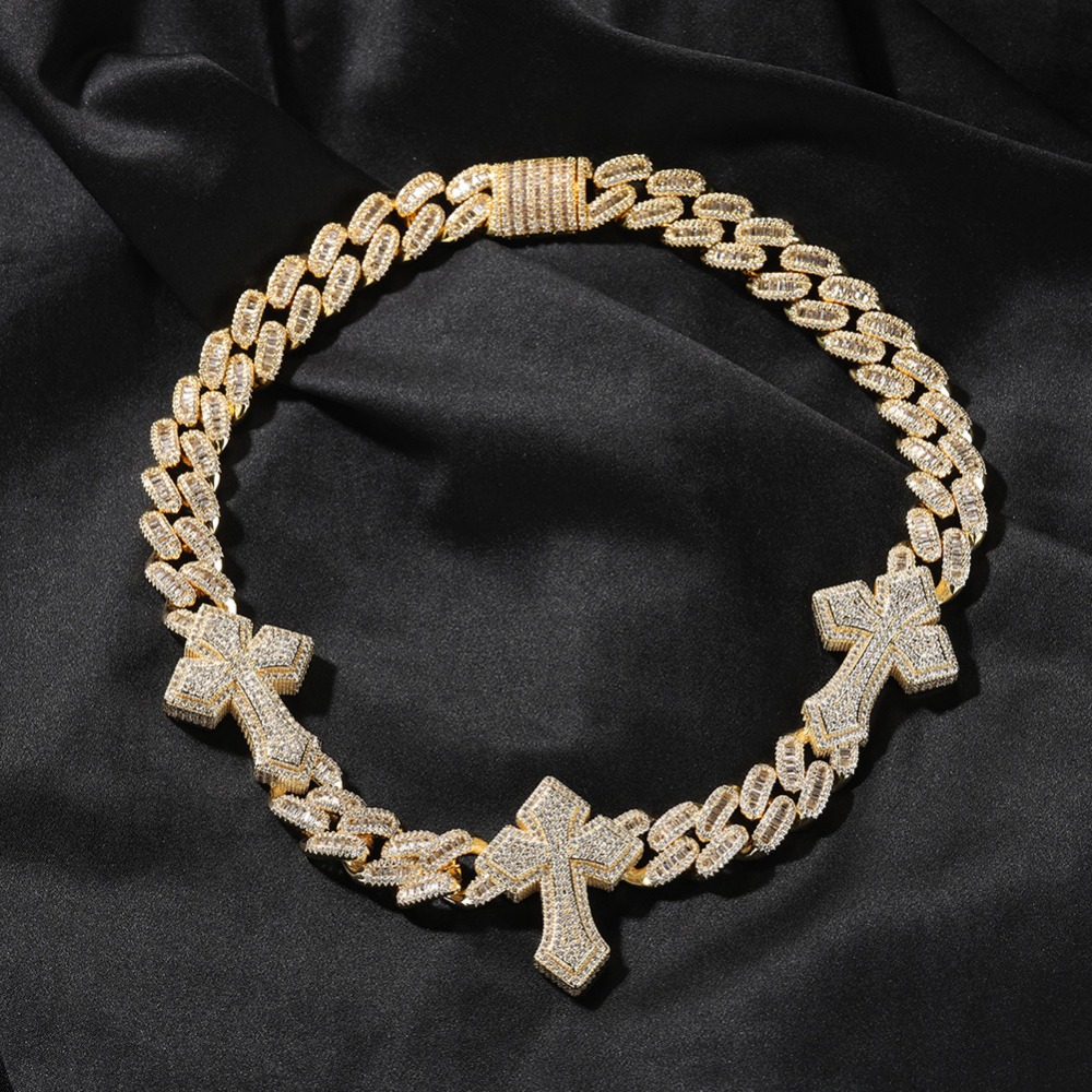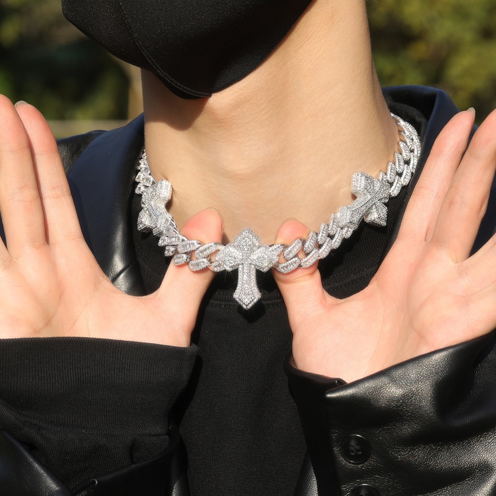 Full zirconia cross Cuban chain - Hiphop men's street dance cool necklace