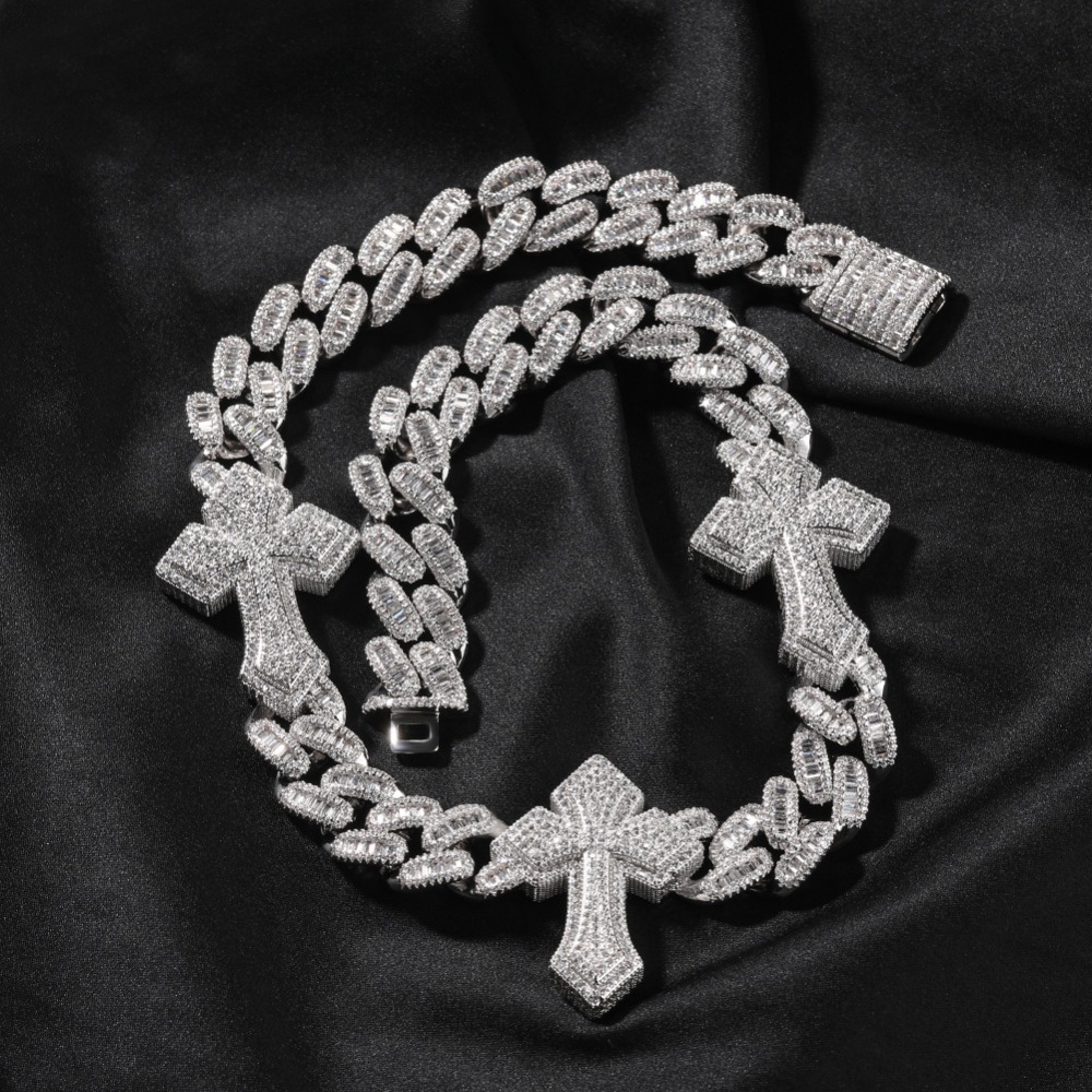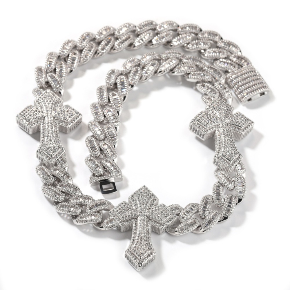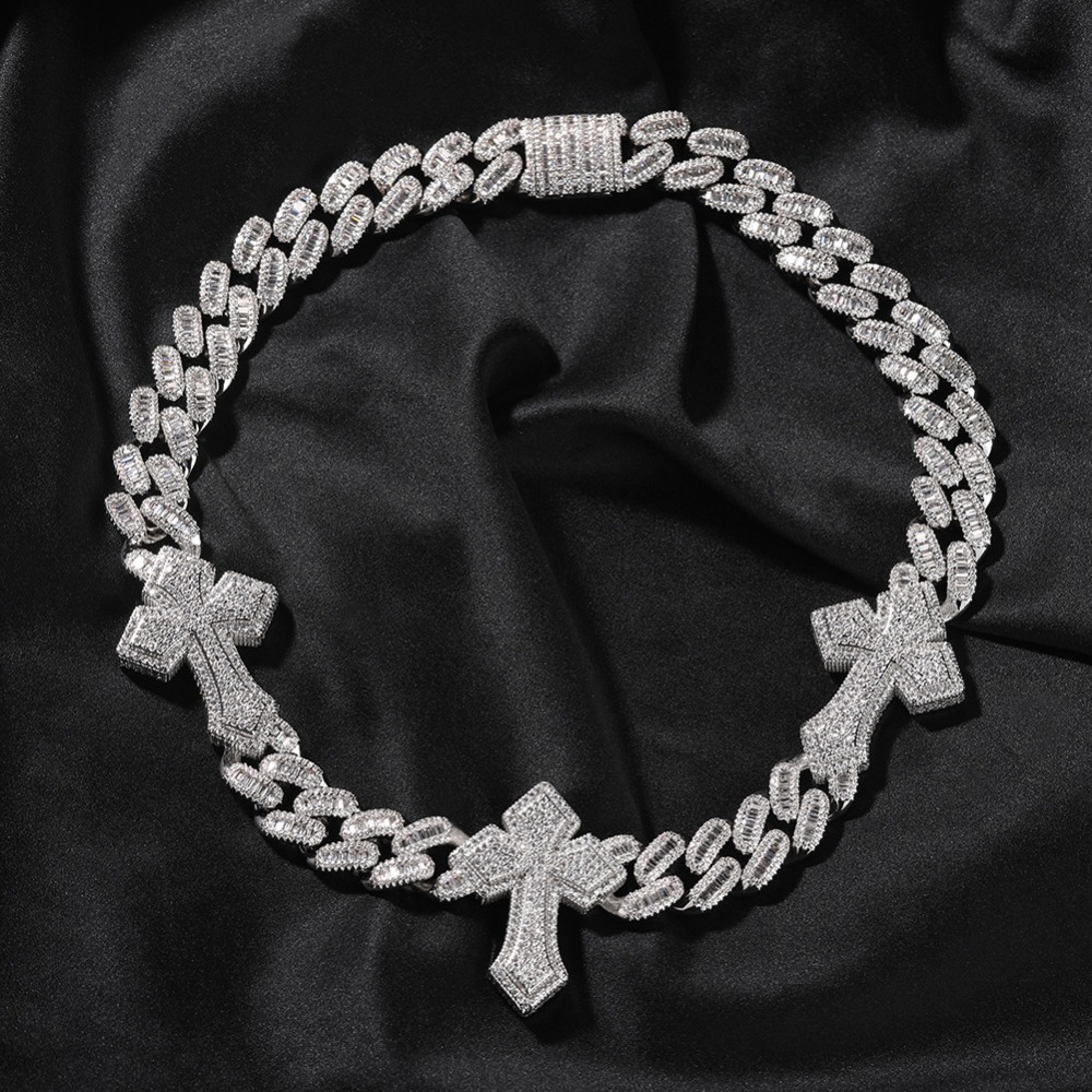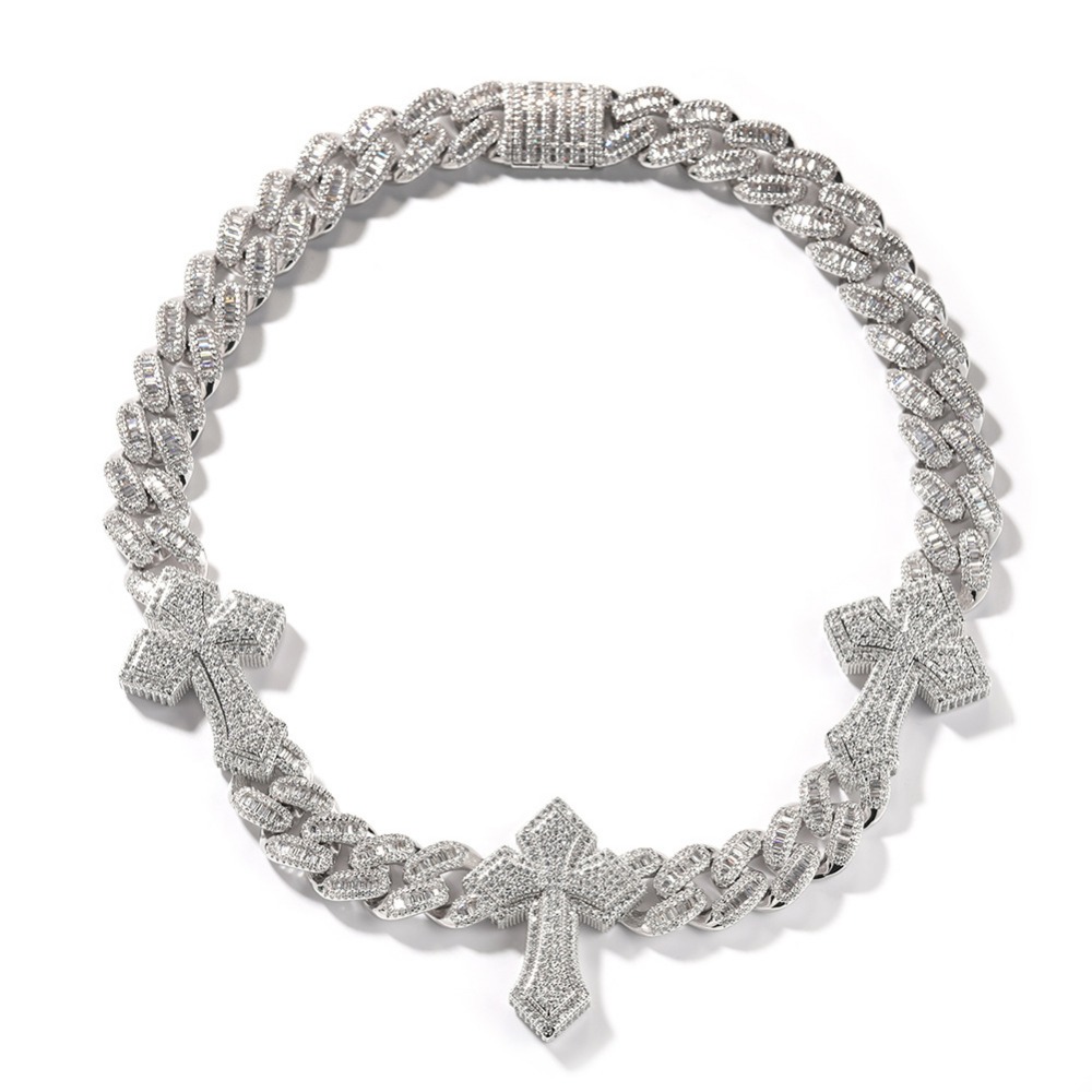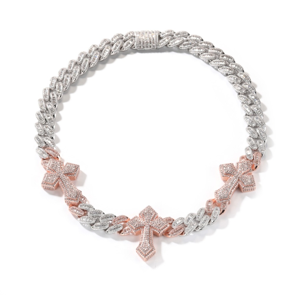 Full zirconia cross Cuban chain - Hiphop men's street dance cool necklace