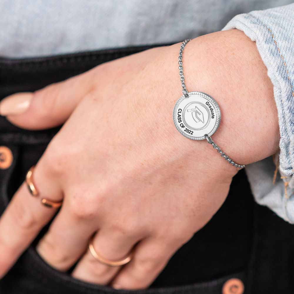 Product Features: Silver/copper material bracelet, with excellent texture, light weight, and no burden on the wrist. The graduation cap design makes it perfect for graduation gifts.